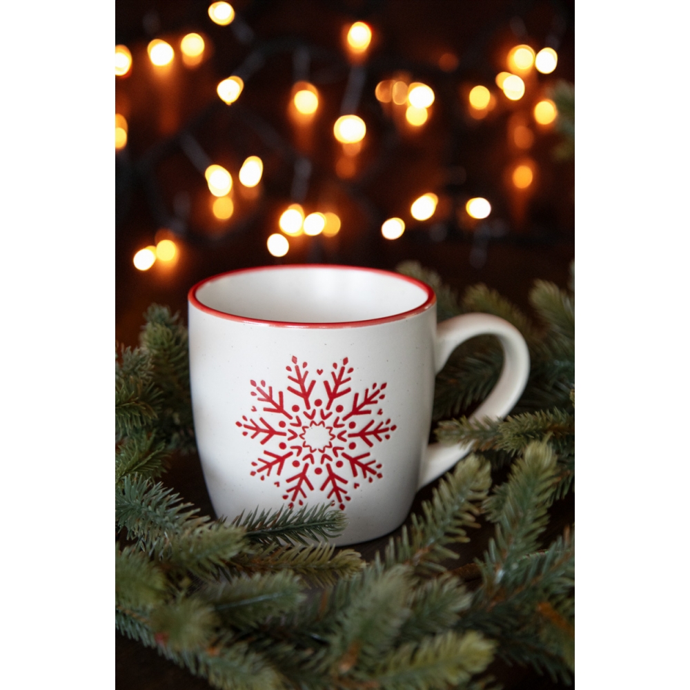 Artikel-Nr: AND803419-05Keramiktasse im Weihnachtsdesign mit gesprenkelter Oberfläche. Füllmenge: 320 ml. Einzeln in Kraftpapierbox.