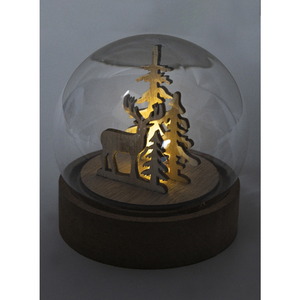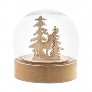 Artikel-Nr: AND800205-00Beleuchtete Weihnachtsdekoration in Schneekugelform auf MDF-Holzsockel mit LED-Licht. Inklusive Knopfzellenbatterien. Mit Ein- / Ausschalter am Sockel.