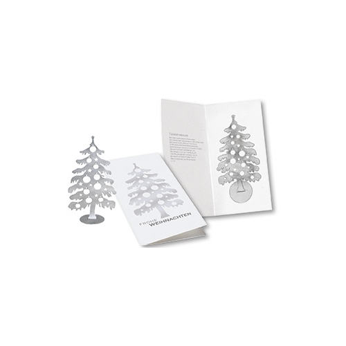 Inhalt: Weihnachtskarte mit einem Weihnachtsbaum aus Edelstahl zum Aufstellen (80 x 170 mm).