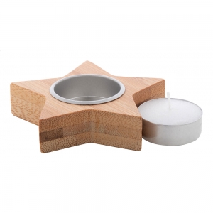 Artikel-Nr: AND800784-AWeihnachtskerzenhalter aus Bambus mit Vanilleduft-Teelicht aus Pflanzenwachs. Brenndauer: 4 Stunden. Einzeln in Kraftpapierbox.