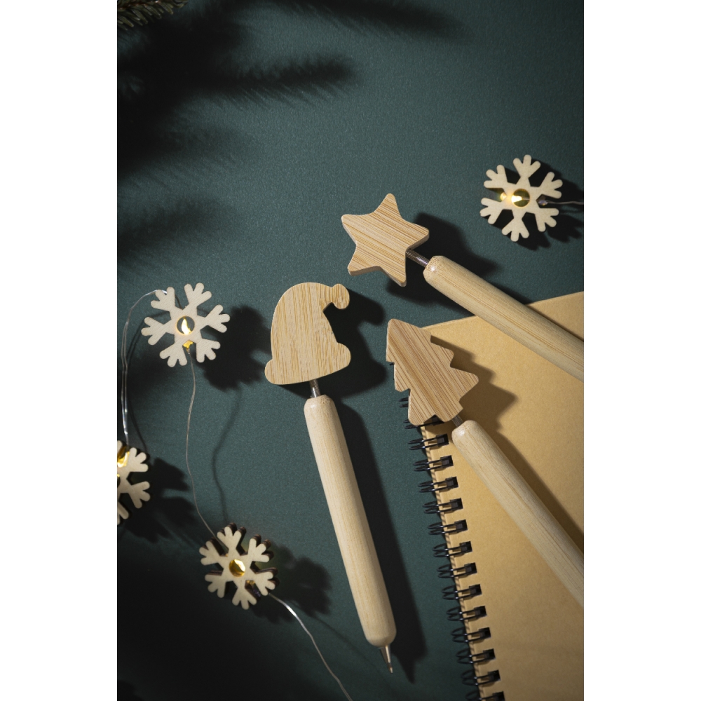 Artikel-Nr: AND800042-AKugelschreiber aus Bambus mit Weihnachtsfigur auf der Spitze, blauschreibend.
