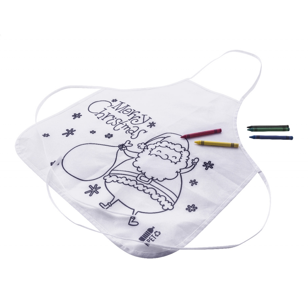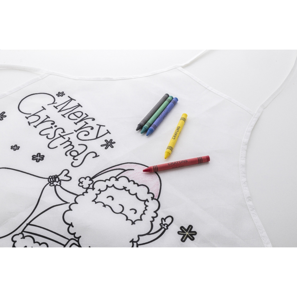 Artikel-Nr: AND800040Weihnachtsschürze für Kinder zum Bemalen aus RPET-Vlies mit 5 Buntstiften.