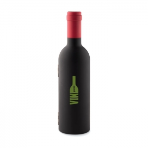 Artikel-Nr: OCBMO8999-03Wein-Set verpackt in einer Deko-Flasche mit magnetischem Verschluss. Mit Kellnermesser, Flaschenverschluss und Weinkragen.