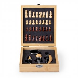 Artikel-Nr: KTO21099000000Einzigartiges Schach-Weinset – Teile im Lieferumfang enthalten – aus natürlichem Bambus. Mit Sicherheitsverschluss und Zubehör aus Edelstahl und Bambus. Inklusive Korkenzieher mit Kapselschneider und Flaschenöffner; Stopfen, Dekanter und Tropfstopp. Präsentiert in einem Einzeletui mit weich gestanzter und geschäumter Innenseite. Materialien wie Bambus fördern die Verwendung natürlicher Rohstoffe und reduzieren so den Schadstoffausstoß. Es stammt von einer äußerst widerstandsfähigen und vielseitigen Pflanze, die schnell wächst und sich regeneriert, was sie zu einer hervorragenden Alternative zu herkömmlichem Holz macht.