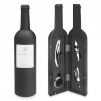 Artikel-Nr: 34251359Eine Weinflasche, die es in sich hat: Im Inneren verbirgt sie Kellnermesser, Tropfschutz, Flaschenverschluss und Ausgießer. Inklusive dreier Etiketten, die sich beschriften lassen.
