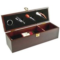 Bestehend aus Kellnerbesteck, Tropfring, Ausgießer und Flaschenverschluss, in Holzkiste (ohne Flasche)
