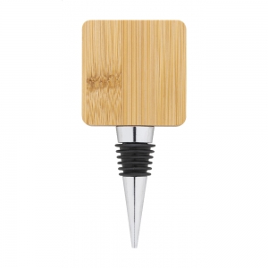 Artikel-Nr: AND800100Weinverschluss aus Metall mit quadratischem Flaschenöffner aus Bambus.