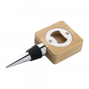 Artikel-Nr: AND800100Weinverschluss aus Metall mit quadratischem Flaschenöffner aus Bambus.