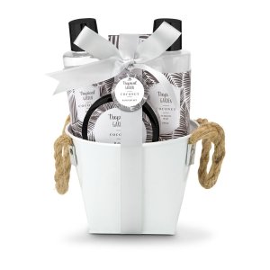 Artikel-Nr: ROP4WS202-13Karibikurlaub für zu Hause: Lassen Sie sich an sonnenverwöhnte Strände entführen. Das Geschenkset Tropical Garden enthält 150 ml Duschgel, 150 ml Schaumbad, 50 ml Bodylotion sowie 100 g Badesalz. Die Wellness-Accessoires mit einem leicht süßlichen, frischen Duft nach Kokosnuss sind verpackt in einem praktischen, weißen Metalleimer mit Seilhenkeln.