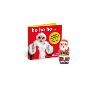 Artikel-Nr: CDL95576Köstlicher Genuss mit persönlicher Note! Einfach mal Danke sagen, mit unserem charmanten Mini Schokoladen-Weihnachtsmann auf einer individuell bedruckbaren Werbekarte. Dieses kleine, aber feine Geschenk kombiniert köstlichen Genuss mit einer persönlichen Note.