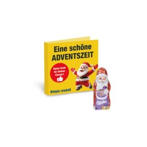 Artikel-Nr: CDL95574Köstlicher Genuss mit persönlicher Note! Einfach mal Danke sagen, mit unserem charmanten Mini Schokoladen-Weihnachtsmann auf einer individuell bedruckbaren Werbekarte. Dieses kleine, aber feine Geschenk kombiniert köstlichen Genuss mit einer persönlichen Note.