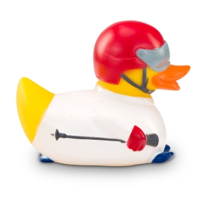 Artikel-Nr: ROP4BE3065-1Andi Abfahrt ist leidenschaftlicher Ski-Abfahrtsläufer. Er rast den Hang hinunter wie ein Weltmeister. Gottseidank schützen ihn ein weißer Skianzug, ein roter Helm mit Visier und rote Handschuhe. Seine Skistöcke hat er fest im Griff. Größe: ca. 8 cm. Inklusive Quietschventil