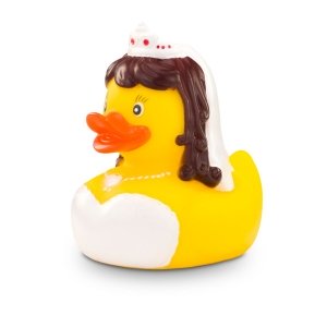 Artikel-Nr: ROP4BE3025-1Lasst die Hochzeitsglocken läuten! Barbara Braut hat sich für ihren großen Tag zurecht gemacht und erscheint in einem bezaubernd weißen Kleid mit Spitze, dem passenden Diadem mit pinken Details auf dem Kopf und einer weißen Halskette um den Hals. Sie ist bereit vor den Altar zu watscheln und das Ja-Wort zu geben. Originelle Badeente für Hochzeiten und Junggesellinnenabschiede. Größe: ca. 8 cm. Inklusive Quietschventil