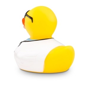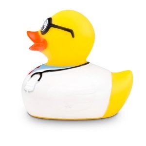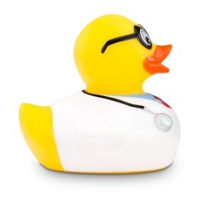 Artikel-Nr: ROP4BE3019-1Die kultige Arzt-Quietscheente für die Badewanne. Dr. Dagobert trägt stilecht einen weißen Arztkittel, eine rote Krawatte, ein hellblaues Hemd und eine schwarze Brille. Das Stethoskop hängt einsatzbereit für die nächste Untersuchung um den Hals. Dr. Dagobert kümmert sich gemeinsam mit Medizinstudenten um die Pflege seiner Patienten und sorgt für gute Laune unter den Kollegen im Krankenhaus. Ab und zu praktiziert er auch noch in seiner eigenen Enten-Praxis. Größe: ca. 8 cm. Inklusive Quietschventil