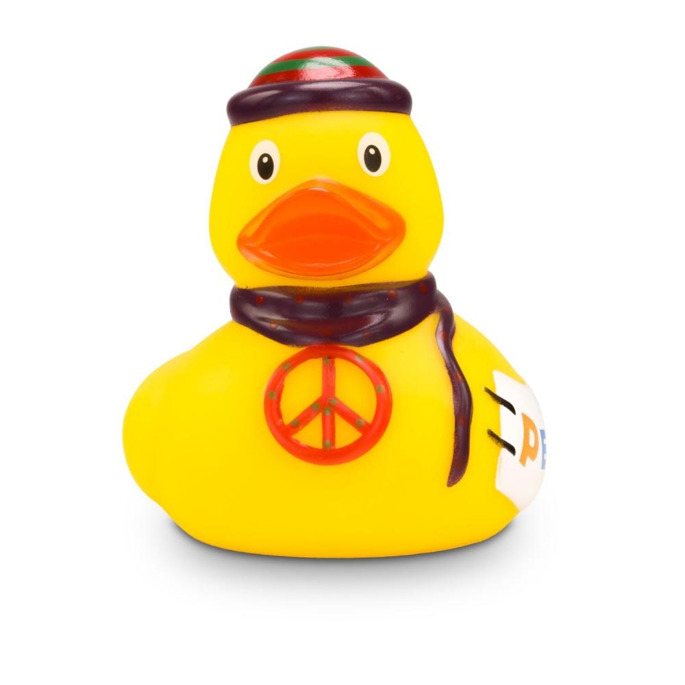 Artikel-Nr: ROP4BE3081-1Fridolin Frieden ist ein echter Friedensbotschafter. Er trägt ein Peace-Symbol an einem braunen Band um seinen Hals und eine braune Mütze mit rot-grünen Details im Hippie-Style. Er hält ein weißes Banner mit bunten Buchstaben unter dem Flügel. Darauf steht: PEACE. Seine Botschaft? Make love, not war! Ein echter Botschafter für Toleranz, Individualität und Vielfalt. Größe: ca. 8 cm. Inklusive Quietschventil