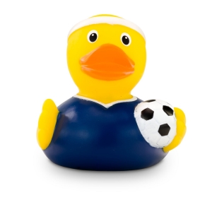 Artikel-Nr: ROP4BE3029-2Fritz Freistoß ist der gefürchtetste Stürmer in der Enten-Fußballliga! In seinem blauen Trikot, dem Stirnband auf dem Kopf und mit Ball unter dem Arm macht er sich gerade bereit für den nächsten Strafstoß. Als Profi-Fußballer bringt er Stadion-Feeling in die Badewanne. Größe: ca. 8 cm. Inklusive Quietschventil