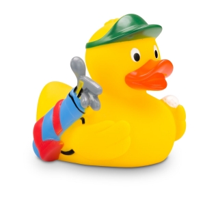 Artikel-Nr: ROP4BE3069-1Georg Golfer trägt eine grüne Kappe und gibt beim Golfen alles! Mit dem Golfball in der Hand und der Golftasche unter dem Flügel ist er bestens ausgestattet und auf dem Weg zum nächsten Abschlag. Auf dem Green spielt er jedes Loch mit Stil - ganz ohne Handicap. Größe: ca. 8 cm. Inklusive Quietschventil