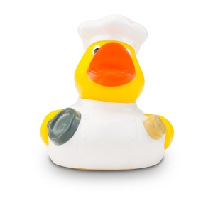 Artikel-Nr: ROP4BE3067-1Kalle Koch ist der König der Kulinarik. In der Küche gibt er als Haute Cuisine Chef immer sein Bestes und kocht mit den feinsten Aromen für seine Enten-Freunde. Egal ob Sonntagsbraten oder Dessert - mit dem Kochlöffel in der Hand und der Haube auf dem Kopf zaubert er täglich einen Gaumenschmaus. Größe: ca. 8 cm. Inklusive Quietschventil