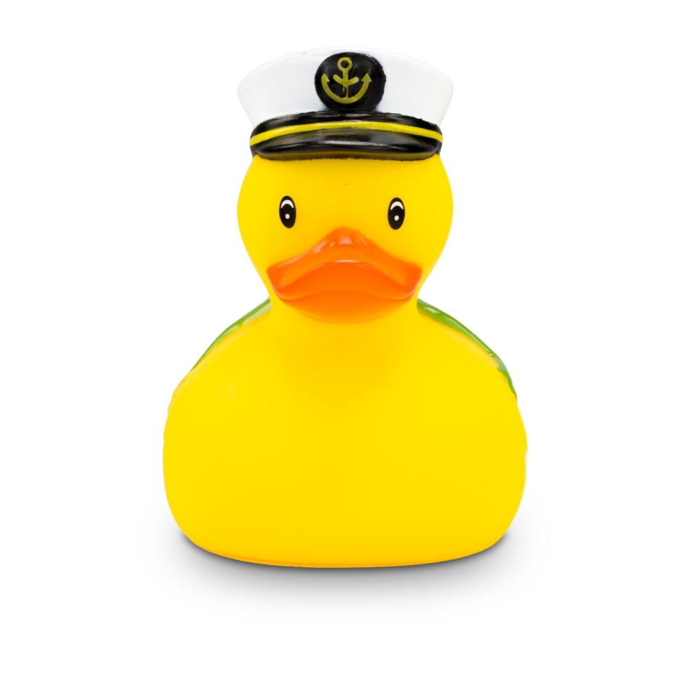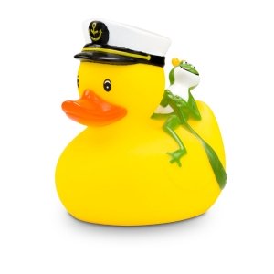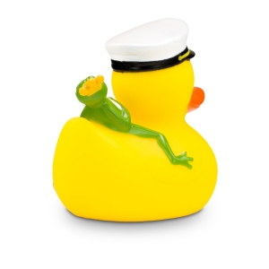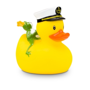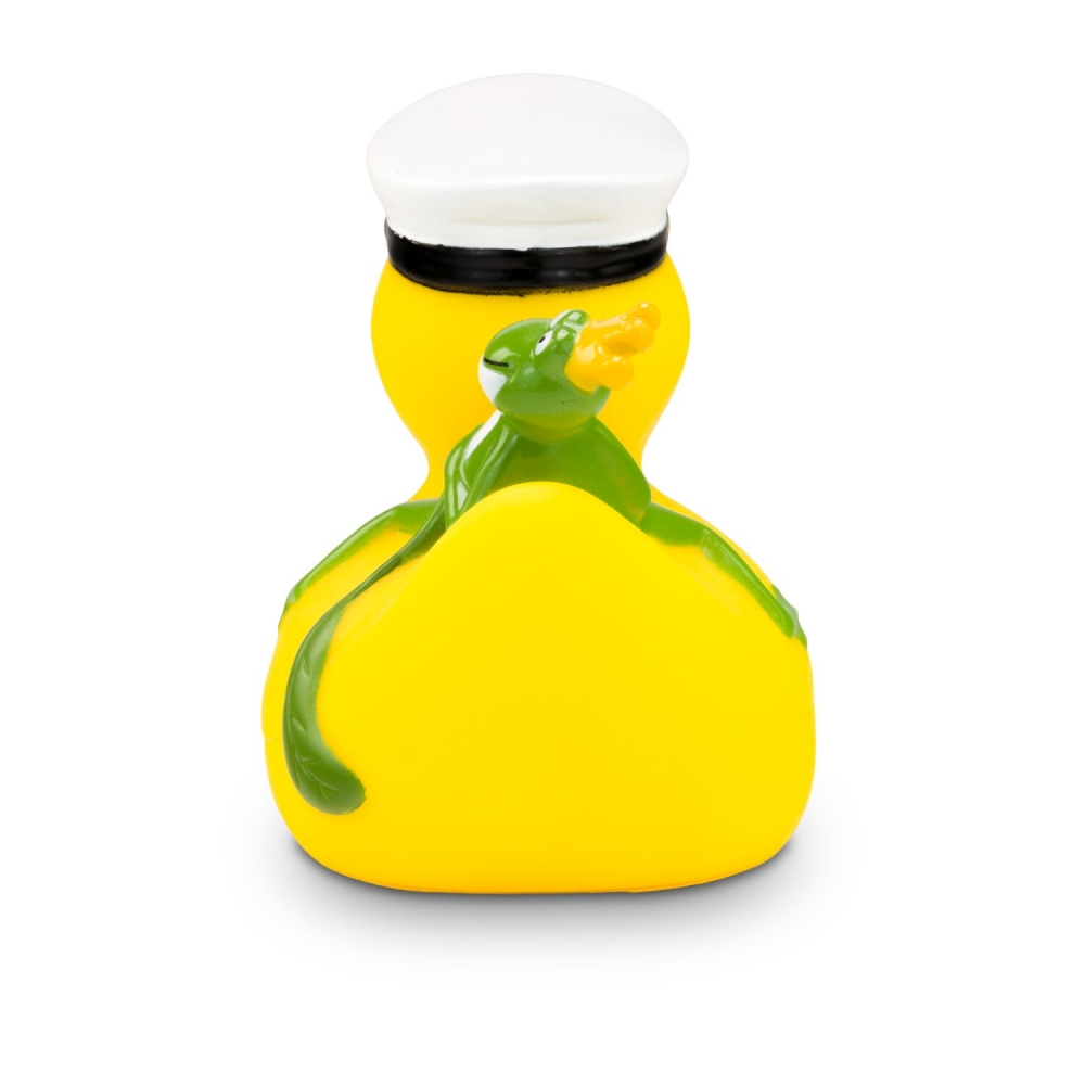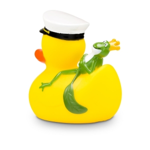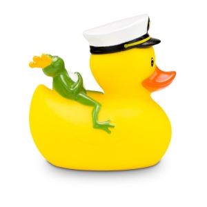 Artikel-Nr: ROP4BE3074-1Die maritime Quietscheente mit besonderem Reise-Begleiter. Karl Kapitän trägt stolz seine Kapitänsmütze mit Goldankersymbol, während sich der kleine grüne Froschkönig entspannt auf seinem Rücken ausruht. Diese detailreiche Badeente ist das perfekte Geschenk für Seefahrer, Märchenfans, oder als origineller Werbeartikel für Kreuzfahrten und maritime Events. Größe: ca. 8 cm. Inklusive Quietschventil