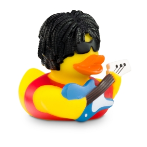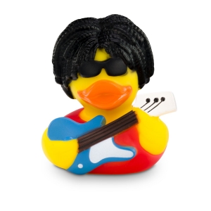 Artikel-Nr: ROP4BE3037-1Badeente Ringo Rockstar bringt Rock’n’Roll in die Wanne. Mit schwarzem Lockenkopf, Sonnenbrille, rotem Shirt und blauer E-Gitarre ist die Ente der Star jeder Bade-Session. Sorgt nicht nur im Badezimmer für gute Stimmung. Größe: ca. 8 cm. Inklusive Quietschventil