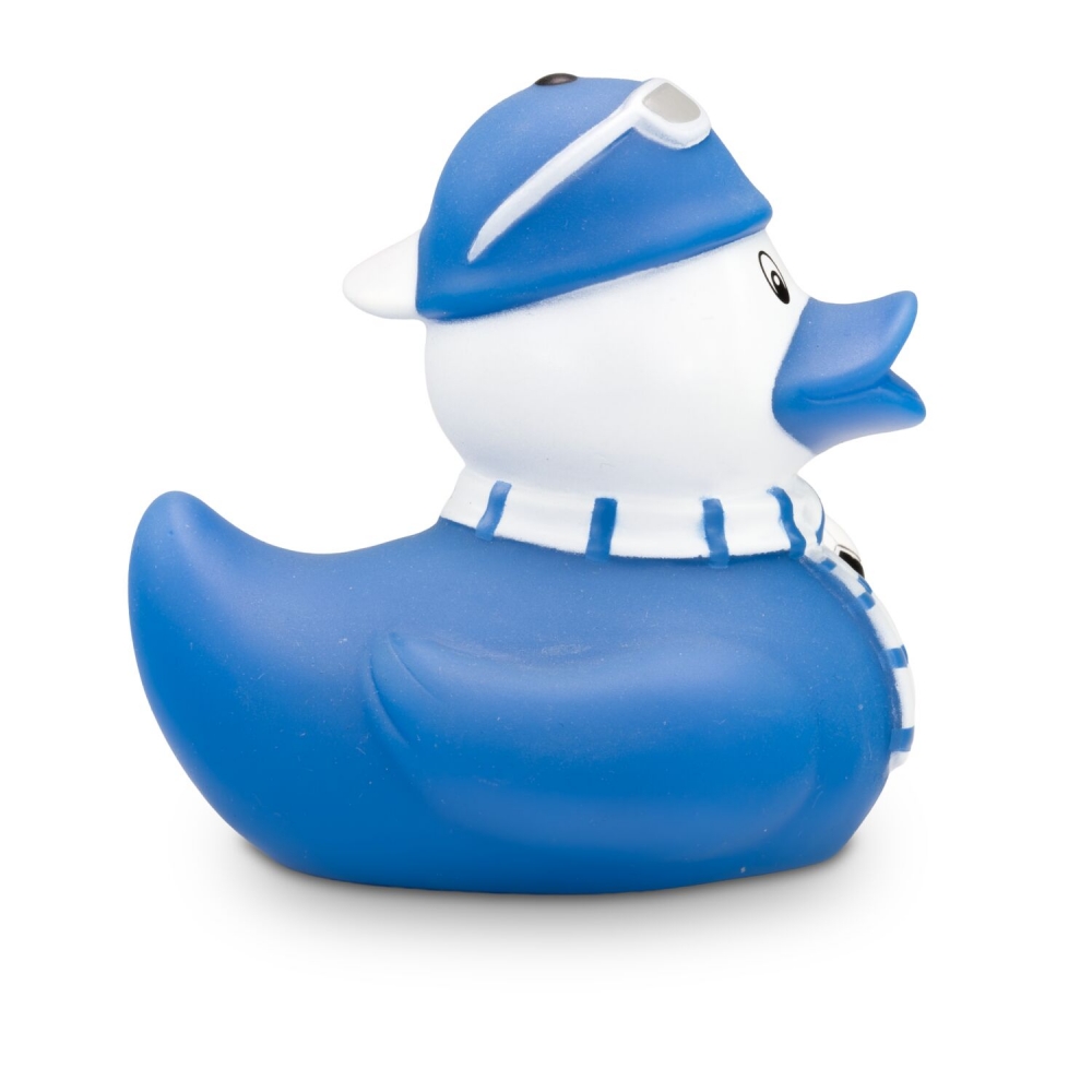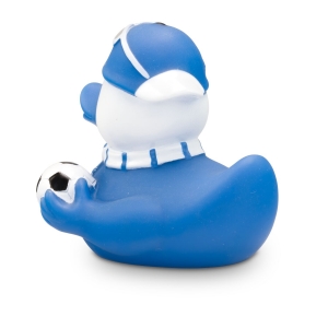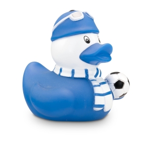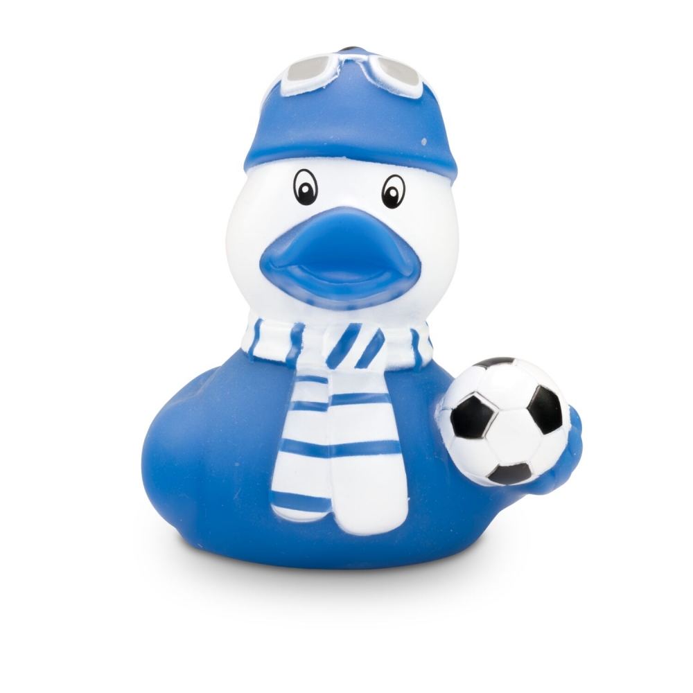 Artikel-Nr: ROP4BE3034-2TOOOR! Sandro Stadion ist begeisterter Fußball-Fan und hat sich für den Stadion-Besuch in Schale geworfen. Er trägt einen Fanschal in seinen Lieblingsfarben Weiß und Blau und eine blaue Mütze mit weißer Sonnenbrille darauf. Unter dem Flügel hält er einen Fußball griffbereit. Größe: ca. 8 cm. Inklusive Quietschventil