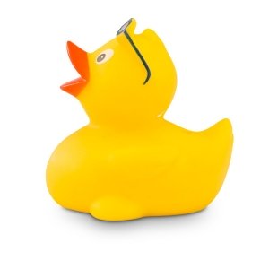 Willi Wellenreiter surft am liebsten mit seinem Surfbrett auf den größten Wellen in der Badewanne. Er trägt die Sonnenbrille auf dem Kopf um auch bei sonnigem Wetter stets den Durchblick zu behalten. Der Strand ist sein Zuhause. Größe: ca. 8 cm. Inklusive Quietschventil