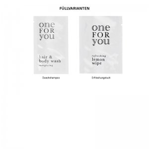 Füllvarianten: 1 Tütchen Duschgel & Shampoo oder 1 Tütchen mit einem Erfrischungstuch