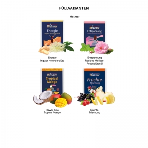 Füllvarianten: 1 Meßmer Teebeutel Entspannung oder 1 Meßmer Teebeutel Energie oder 1 Meßmer Teebeutel Früchte-Mischung oder 1 Meßmer Teebeutel Hawaii Kiss Tropical Mango