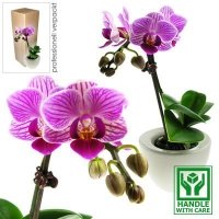 Artikel-Nr: W1000WonderVerschenken Sie eine blühende Mini-Phalänopsis-Orchidee als Werbepflanze! Wir verschicken in Ihrem Auftrag die blühenden Orchideenpflanze für Ihre Kunden in ganz Deutschland. Die Pflanzen werden von uns professionell und sicher nach einem erprobten Verfahren verpackt und termingerecht versendet. Die Orchideen erreichen Ihre Kunden wohlbehalten und unversehrt. Das garantieren wir! Bezüglich Ihrer persönlichen Werbeanbringung sprechen Sie bitte mit uns. Wir sind hier flexibel. Möglich sind kleine Werbe-Kärtchen, die wir Ihnen auf Wunsch herstellen. Oder auch ein Aufkleber mit Ihrem Gruß oder Logo auf dem Topf. Der Keramikübertopf ist im Lieferumfang des Werbeartikels enthalten. Pflege Mini Phalänopsis-Werbepflanze: Standort: hell, aber keine direkte Sonne. Temperatur: Büro (tags 20°C bis 24°C, nachts 18°C bis 20°C).Gießen: Topf gut durchtränken und abtropfen lassen. Nach dem Gießen richtig austrocknen lassen (ca. 3-6 Tage), bevor wieder gegossen wird. Orchideen sind sehr robust und machen viel Freude. Düngung: mit Orchideendünger von Frühjahr bis Herbst alle 2-3 Wochen, Rest
