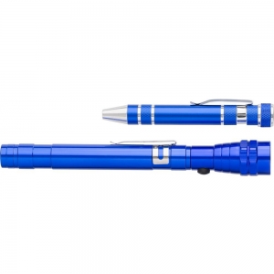 Artikel-Nr: GIV7603023Werkzeug-Set aus Metall bestehend aus LED-Lampe und Schraubendreher mit 8 Bit-Einsätzen, verpackt in einer schwarzen Geschenkbox.