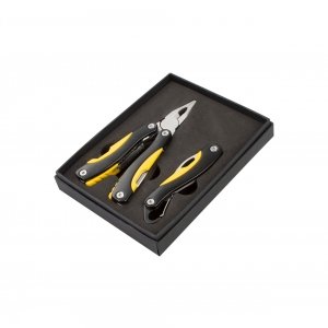 Artikel-Nr: AND808023Werkzeugset bestehend aus Multitool mit 8 Funktionen und Taschenmesser. Material: Edelstahl und Aluminium. Verpackt in schwarzer Geschenkbox.