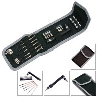 Artikel-Nr: 57382965SW-CH24-teiliges Werkzeugset. Ideal für Handwerksarbeiten im Alltag und für unterwegs. Das kompakte Set besteht aus rostfreien Teilen und beinhaltet: 1 x Bithalter-Griff, 3x Phillips-Bits (PH1 / PH2 / PH3), 3x Schlitz-Bits (4 / 6 / 7 mm), 3x Pozidriv-Bits (PZ1 / PZ2 / PZ3), 1 Adapter für Stecknüsse, 4x Nüsse (7 / 8 / 9 / 10), 3x Inbusschlüssel (SW3 / SW4 / SW5), 4x Schlitz-Schraubendreher (1,5 / 2,0 / 2,5 / 3,0 mm), 2x Phillips-Schraubendreher (PH00 / PH0). Die Bits sind aus CRV-Stahl 6150 Rockwell 54° und die Steckschlüssel-Aufsätze aus Carbonstahl Rockwell 45° gefertigt. Alles ist in einer Nylontasche untergebracht.