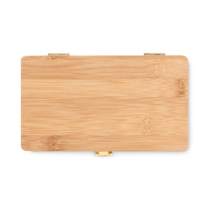 Artikel-Nr: OCBMO6496-40Praktisches 21-teiliges Werkzeugset in einem natürlich aussehenden Bambuskoffer. Das perfekte Präsent für jeden Heimwerker oder Hobbybastler. Diese nützliche Box enthält alle wichtigen Werkzeuge, die man zu Hause haben sollte, wenn Reparaturen anfallen oder kleine Projekte anstehen. Er enthält 3 Schraubenzieher, 10 Stück Bit-Satz in Halterung, 3 Steckschlüsseleinsätze, 3 Torxeinsätze, 1 Zwischenstück, 4 Steckschlüsseleinsätze, 1 Stück Cutter, 1 Griff und 1 Adapter. Da Bambus ein natürliches Material ist, können Farbton und Maße pro Artikel variieren. Dies kann zu Abweichungen im Ergebnis der Veredlung führen. Kartongröße 19,5 x 11,8 x 3 cm. FSC®-certified | FSC 100%, N5.7, FSC-C213206