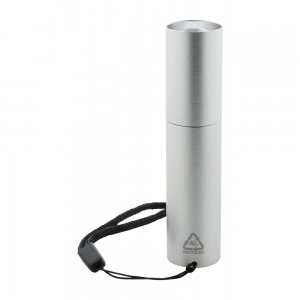 Artikel-Nr: AND864122-21Taschenlampe aus recyceltem Aluminium mit integriertem, per USB aufladbarem Akku (400 mAh) und Trageschlaufe. Mit zoombarem Hochleistungs-COB-Licht und 3 Leuchtmodi. Inklusive USB-Ladekabel.