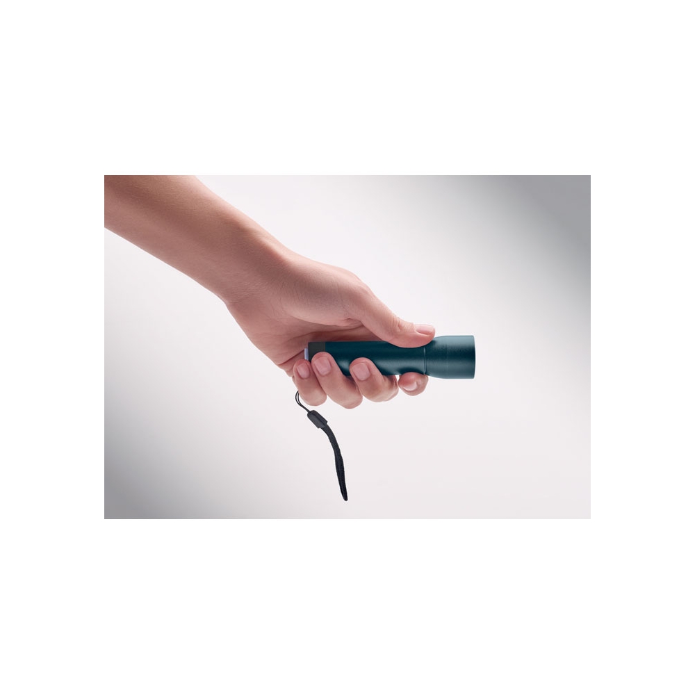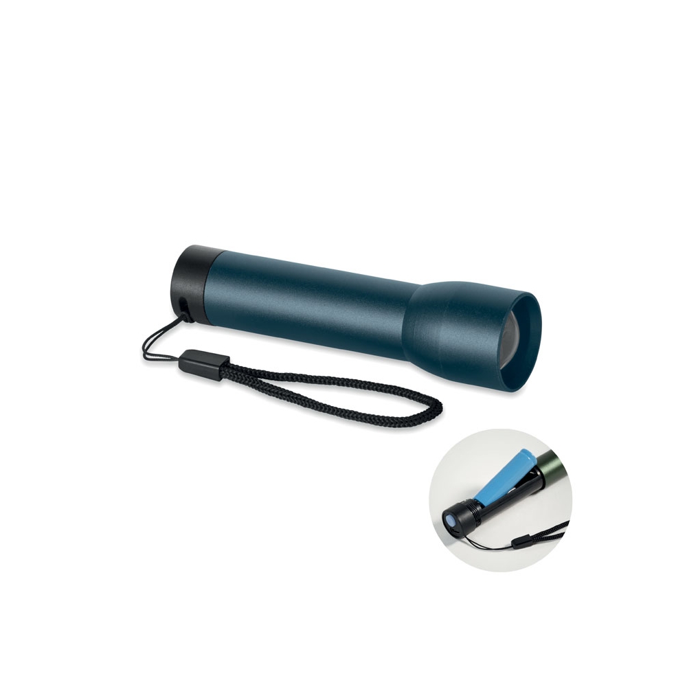Artikel-Nr: OCBMO2991-85Wiederaufladbare Taschenlampe aus recyceltem Aluminium. Diverse Lichteinstellungen und Zoomfunktion. Inkl. austauschbarer 14500-Lithiumbatterie.