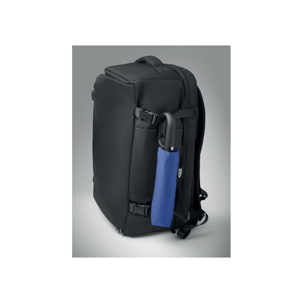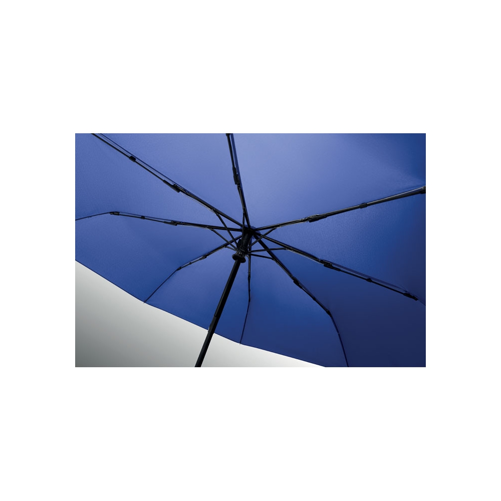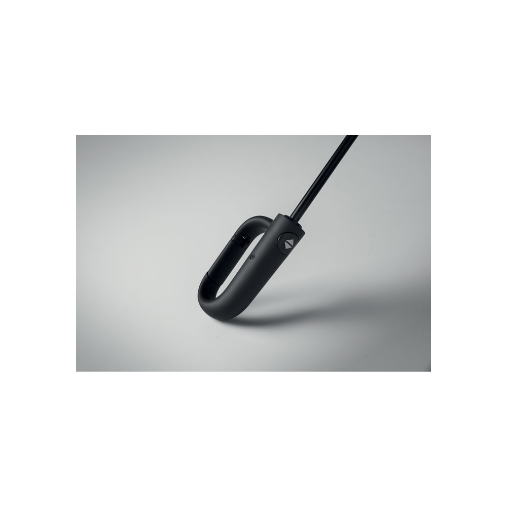 Artikel-Nr: OCBMO2692-3721'' Regenschirm aus 190 T RPET Pongee. Windbeständig. Schwarz überzogenes 2-teiliges Fiberglasgestell, Stangen aus Fiberglas. Gummierter D-förmiger Karabinergriff. Passende Schirmhülle. Automatische Öffnung und Schließung.