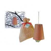 Inhalt: Jutesack mit einer Futterstation aus Terrakotta (ohne Meisenknödel), die Hanfschnur ist beigelegt und einem Anhängekärtchen.
