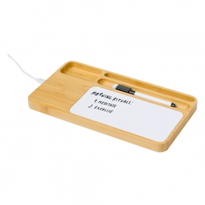 Artikel-Nr: AND733942Schreibtisch-Organizer und Handyhalter aus Bambus mit Whiteboard-Platte, Filzstift, Radierer und Wireless-Fastcharger (15W). Inkl. USB-Ladekabel.