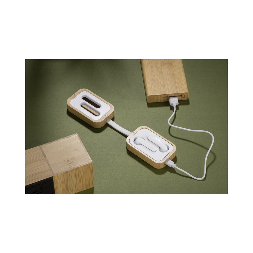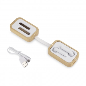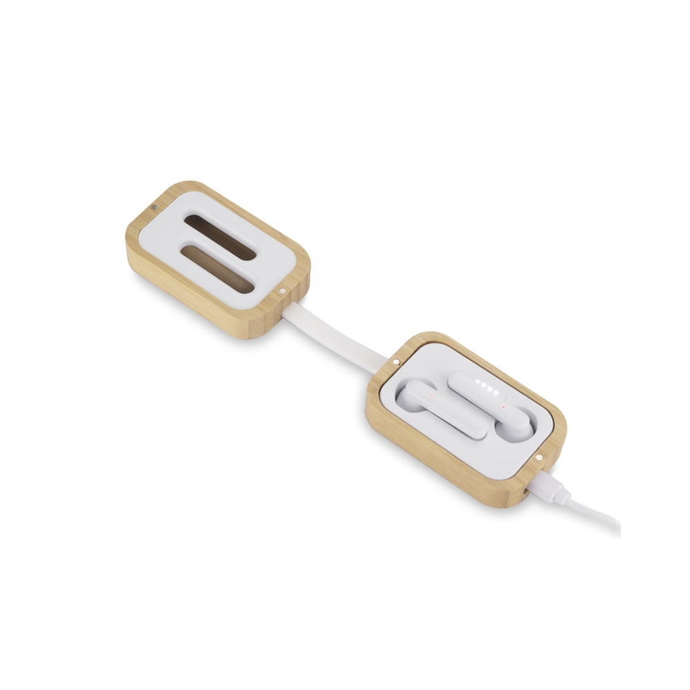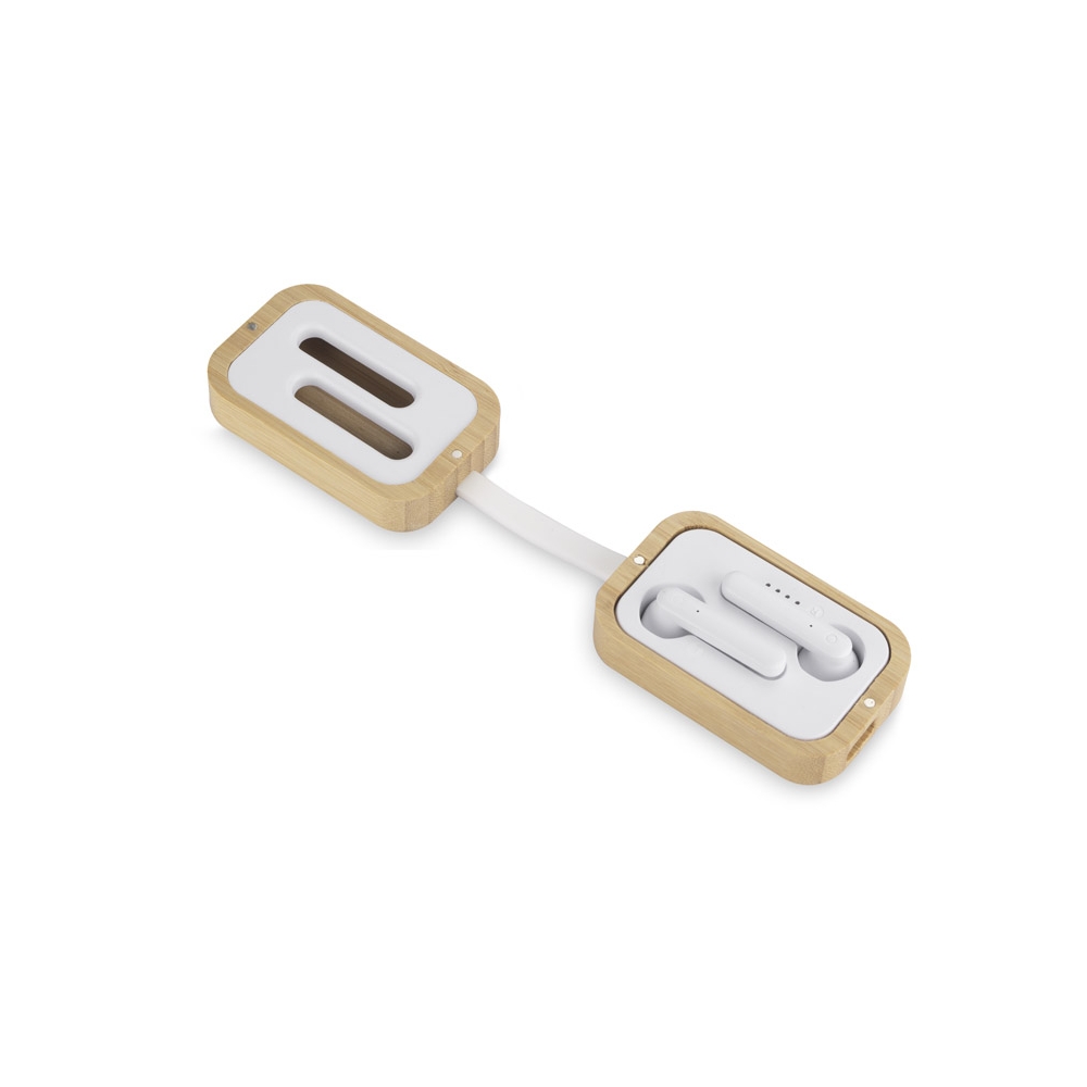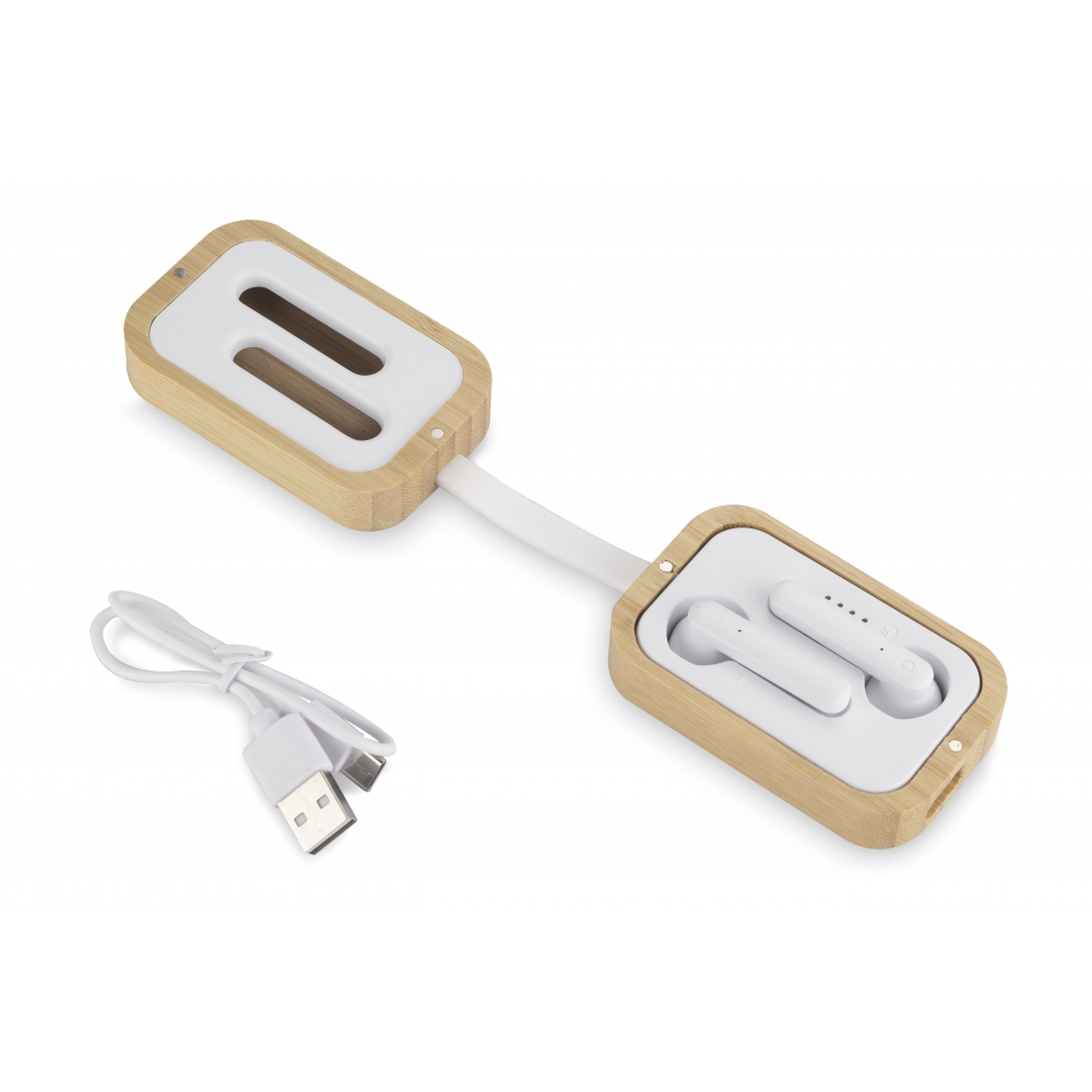 Artikel-Nr: ARD09152-17Die Wireless-Kopfhörer BAHO sind in einem Bambusgehäuse untergebracht, das magnetisch geschlossen wird. Dank ihrer interessanten und ungewöhnlichen Form wird niemand gleichgültig an ihnen vorbeigehen. Sie sind mit einer Ladeanzeige ausgestattet, so dass Sie nie von einem niedrigen Batteriestand des Geräts überrascht werden. Die Touch-Bedienung des Kopfhörers bietet einen hohen Bedienkomfort. Die Kopfhörer haben ein eingebautes Mikrofon, mit dem Sie telefonieren können. Möglichkeit, nur einen Kopfhörer zu verwenden. Technische Daten: Bluetooth-Version: V5.1, Bluetooth-Reichweite: bis zu 10 m, Akkukapazität in jedem Hörer: 30 mAh, Akkukapazität im Gehäuse: 200 mAh, Betriebsdauer bis zu 3 Stunden, Ladeanschluss Typ-C.