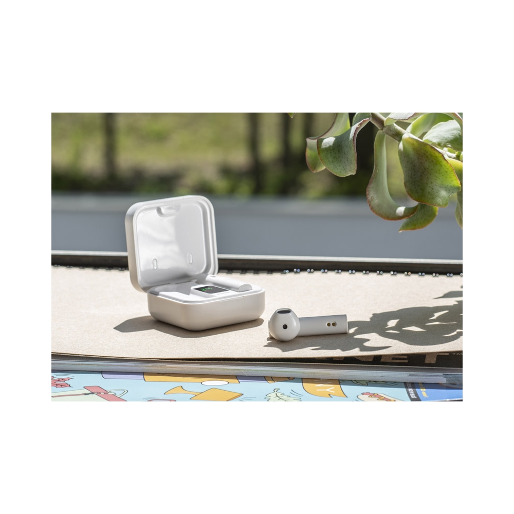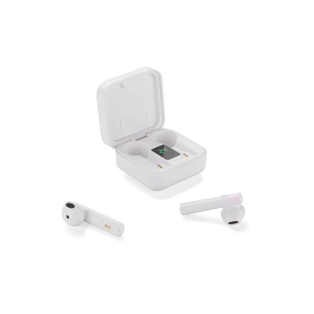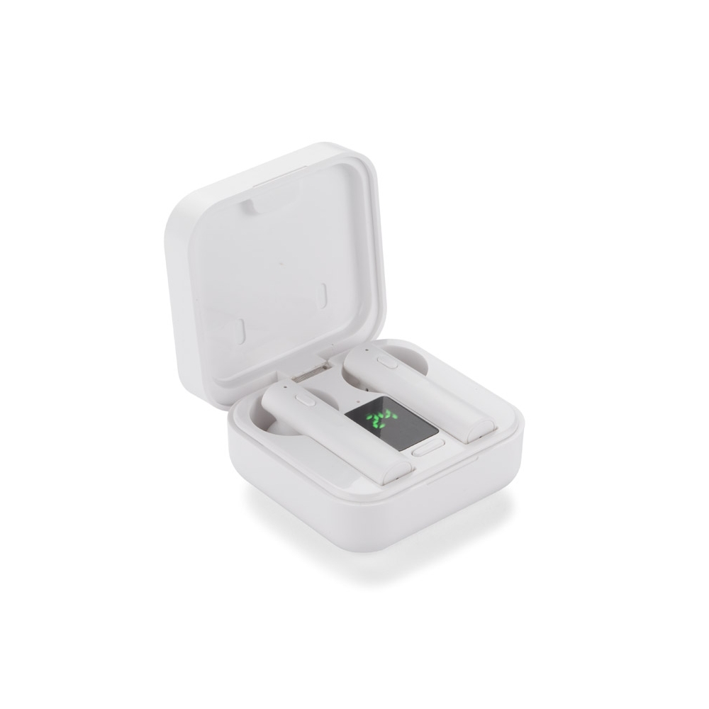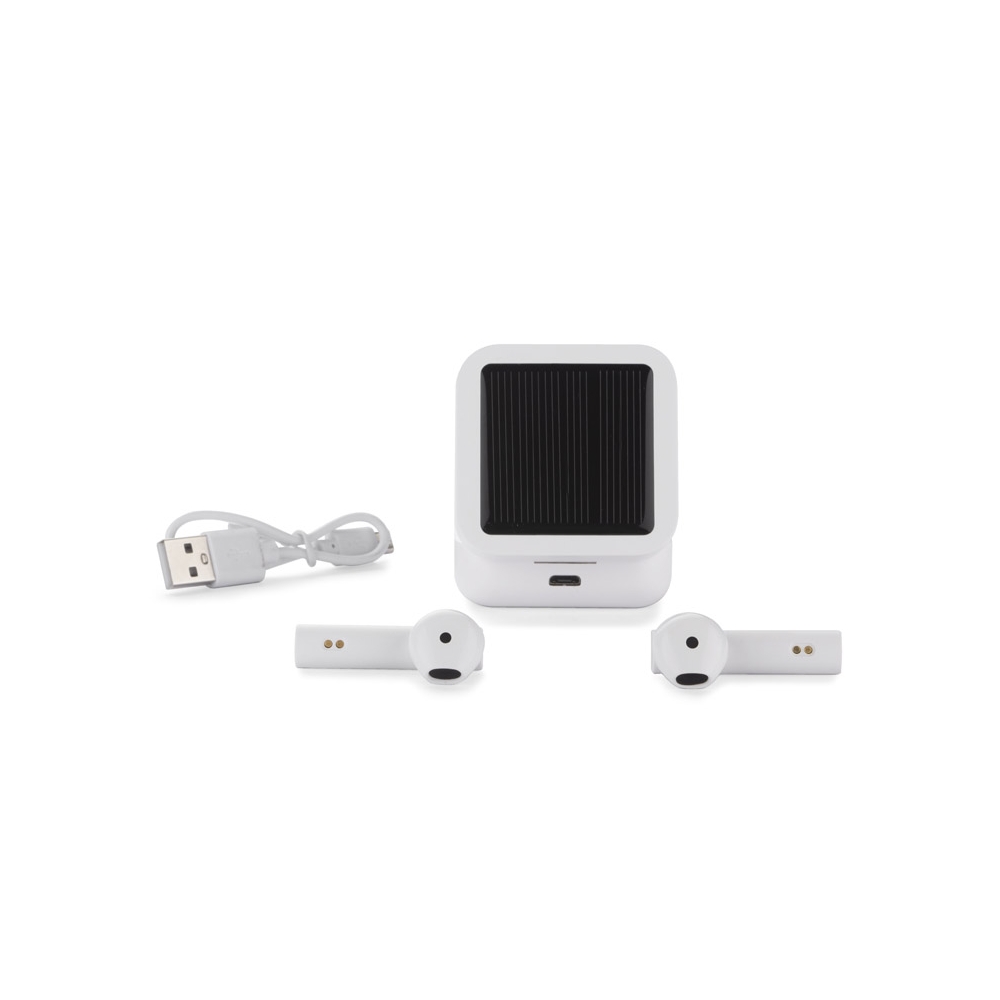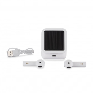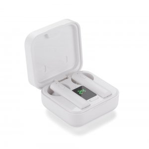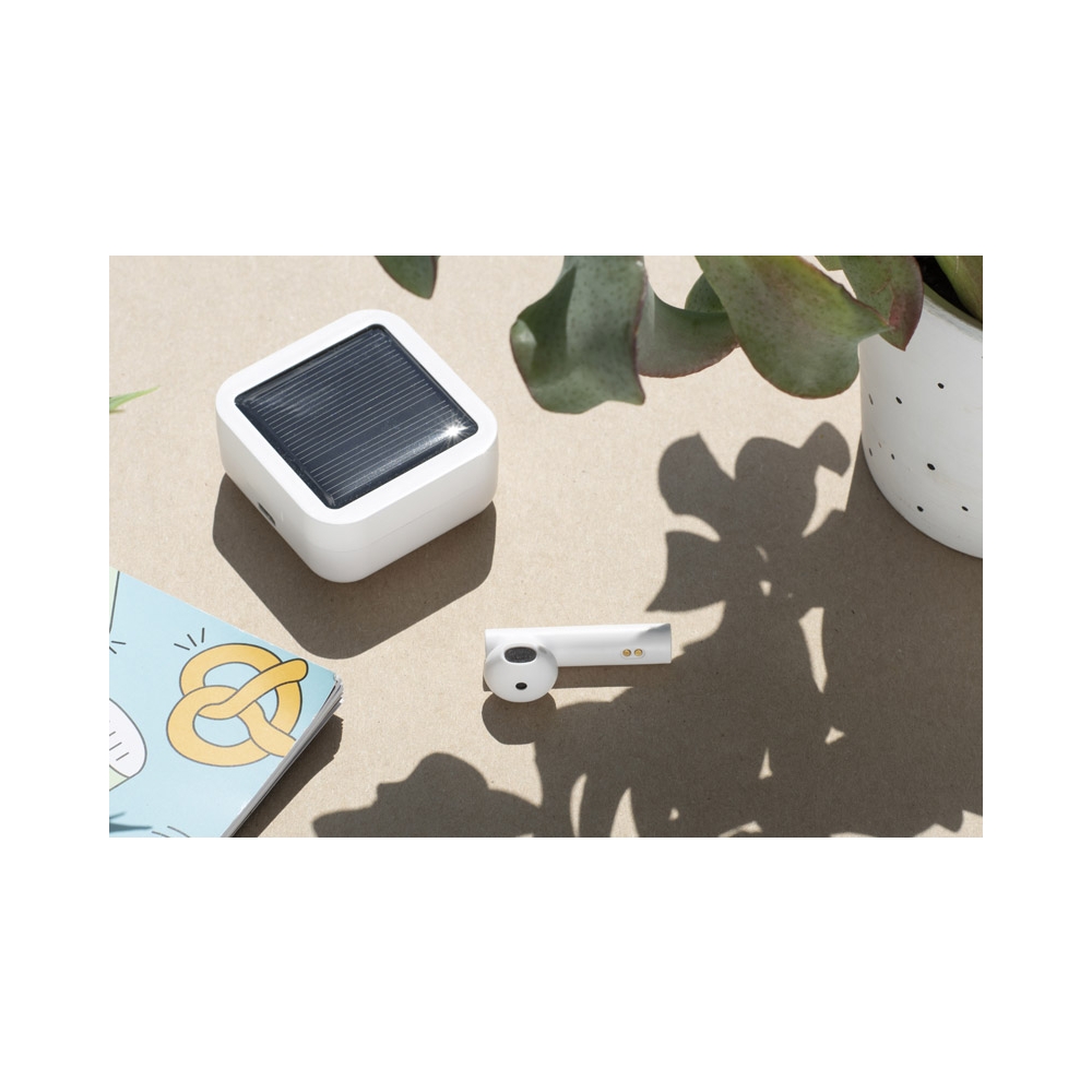 Artikel-Nr: ARD09145-01Die kabellosen Kopfhörer SUONO zeichnen sich durch eine sehr gute Klangqualität und einen hohen Tragekomfort durch die perfekte Form aus. Das praktische Etui dient gleichzeitig als Ladestation. Sie können traditionell über das Ladegerät oder über das Solarpanel mit Strom versorgt werden. Die Kapazität des Akkus beträgt 200mAh, was für etwa 5-6 Stunden in der Sonne ausreicht. Die Kapazität der Ohrhörer beträgt 30 mAh, was für etwa 2 Stunden Betriebszeit ausreicht. Mit dem eingebauten Mikrofon können Sie telefonieren, und mit den Tasten am Kopfhörer können Sie pausieren, Lieder zurückspulen und einen Sprachassistenten anrufen. Das Display zeigt den Ladezustand des Akkus an und weist uns darauf hin, den Kopfhörer zu laden. Bluetooth 5.0-Kompatibilität, die Möglichkeit, nur einen Kopfhörer zu verwenden.
