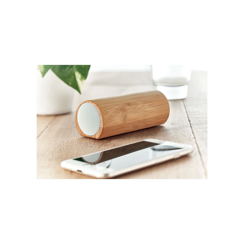 Artikel-Nr: OCBMO6219-405.0 wireless Stereo Lautsprecher aus ABS mit Bambusgehäuse. Inkl. wiederaufladbare Lithium-ion 2000 mAh Batterie. Ausgangsleistung: 4 Ohm, 5Wx2. Bambus ist ein natürliches Produkt, es kann daher zu leichten Abweichungen in Farbe, Dekor und Maßen kommen.