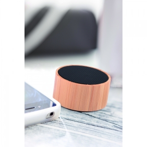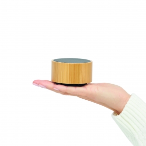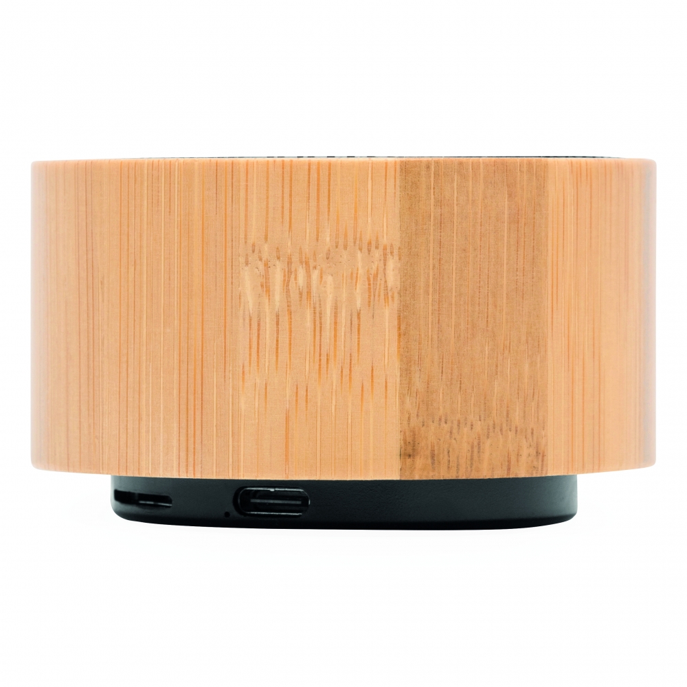 Artikel-Nr: INP56-0406242Wireless-Lautsprecher BAMBOO SOUND: mit Bambus-Ummantelung, Musikleistung 3 Watt, zur Kopplung mit wireless-fähigen Geräten, kompatibel zu Bluetooth®, Reichweite ca. 10 m, microSD-Slot für MP3-Funktion, Freisprechfunktion, leistungsstarker Lithium-Akku, Kapazität: 300 mAh, inkl. USB-Ladekabel mit USB Typ C Stecker (Länge: ca. 50 cm), mit Bedientasten, An- und Ausschalter und rutschhemmendem Standfuß, in Box