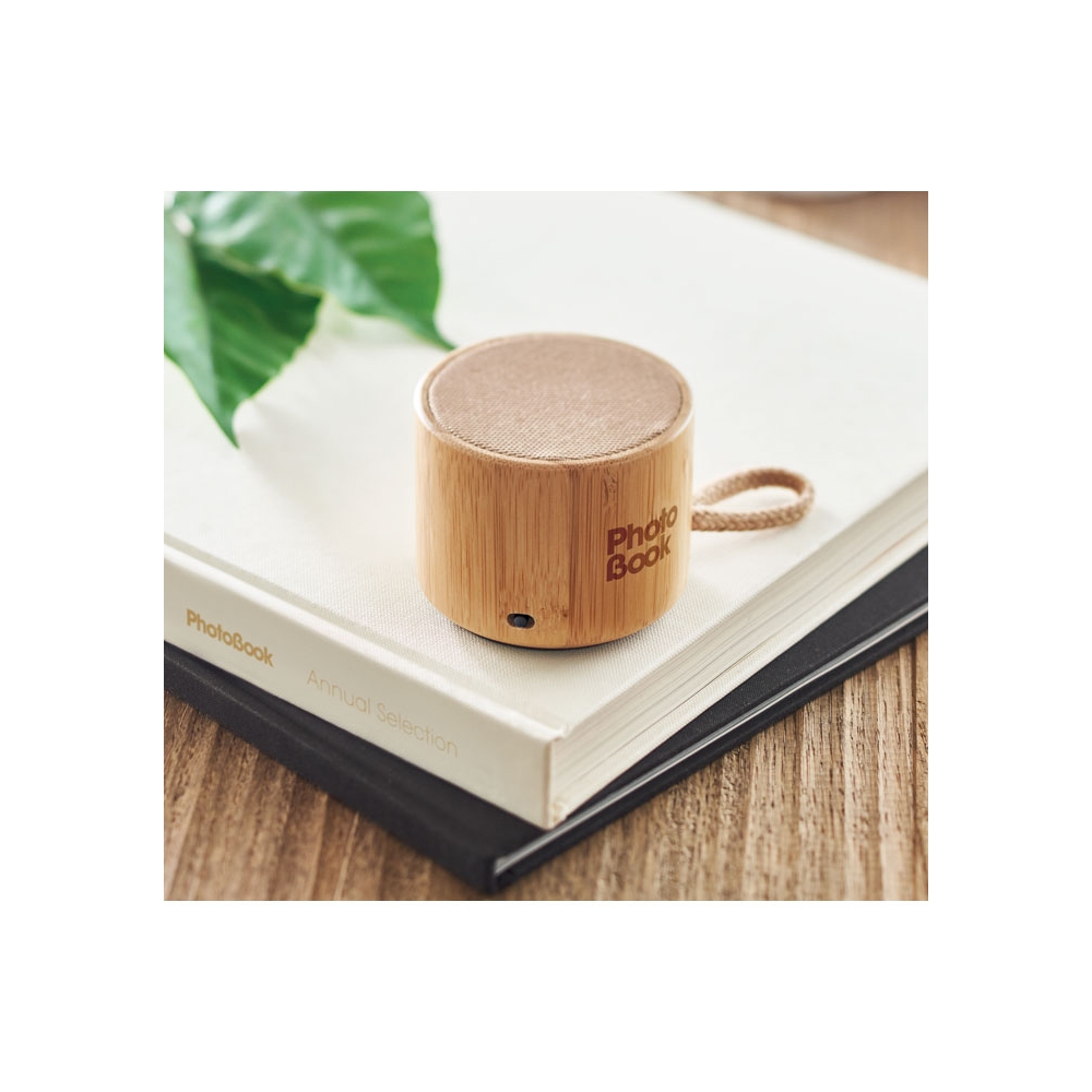 Artikel-Nr: OCBMO6890-405.1 wireless Lautsprecher aus ABS im Bambusgehäuse. Oberseite und Tragschlaufe aus Baumwolle. Mit LED-Lichtanzeige. Inkl. wiederaufladbarer Li-POL-Akku mit 300 mAh. Mit SD-Kartenslot und AUX- / USB-Kabel. Freisprechfunktion. Ausgangsleistung: 3W, 3 Ohm und 5V. Spielzeit ca. 3 h. Bambus ist ein natürliches Produkt, es kann daher zu leichten Abweichungen in Farbe, Dekor und Maßen kommen.