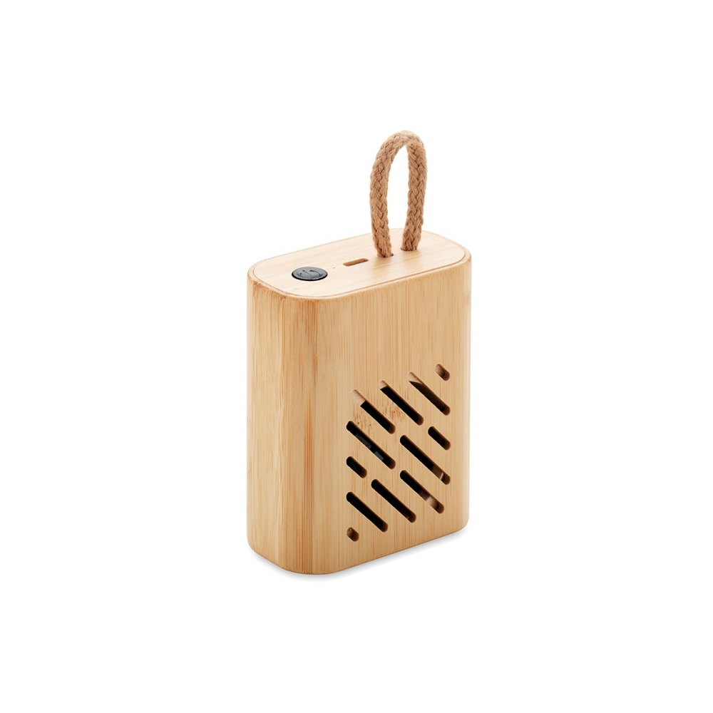 Artikel-Nr: OCBMO6813-405.0 wireless Lautsprecher im Gehäuse aus Bambus. LED-Lichtanzeige. Inkl. 1 wiederaufladbare Li-Pol 300 mAh Batterie. Ausgangsdaten: 3 W, 3 Ohm und 5 V. Spielzeit ca. 4h (70% Lautstärke). Typ-C. Bambus ist ein natürliches Produkt, es kann daher zu leichten Abweichungen in Farbe, Dekor und Maßen kommen.