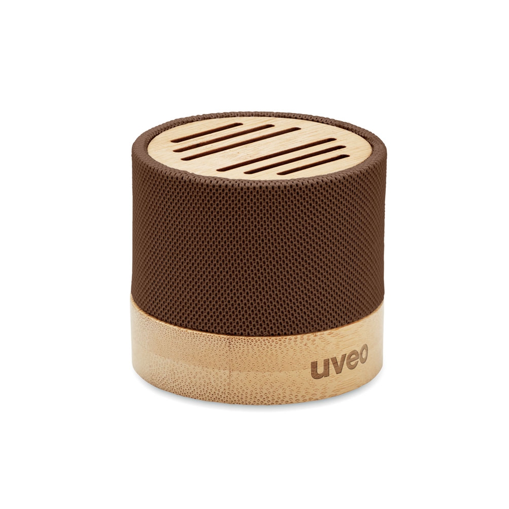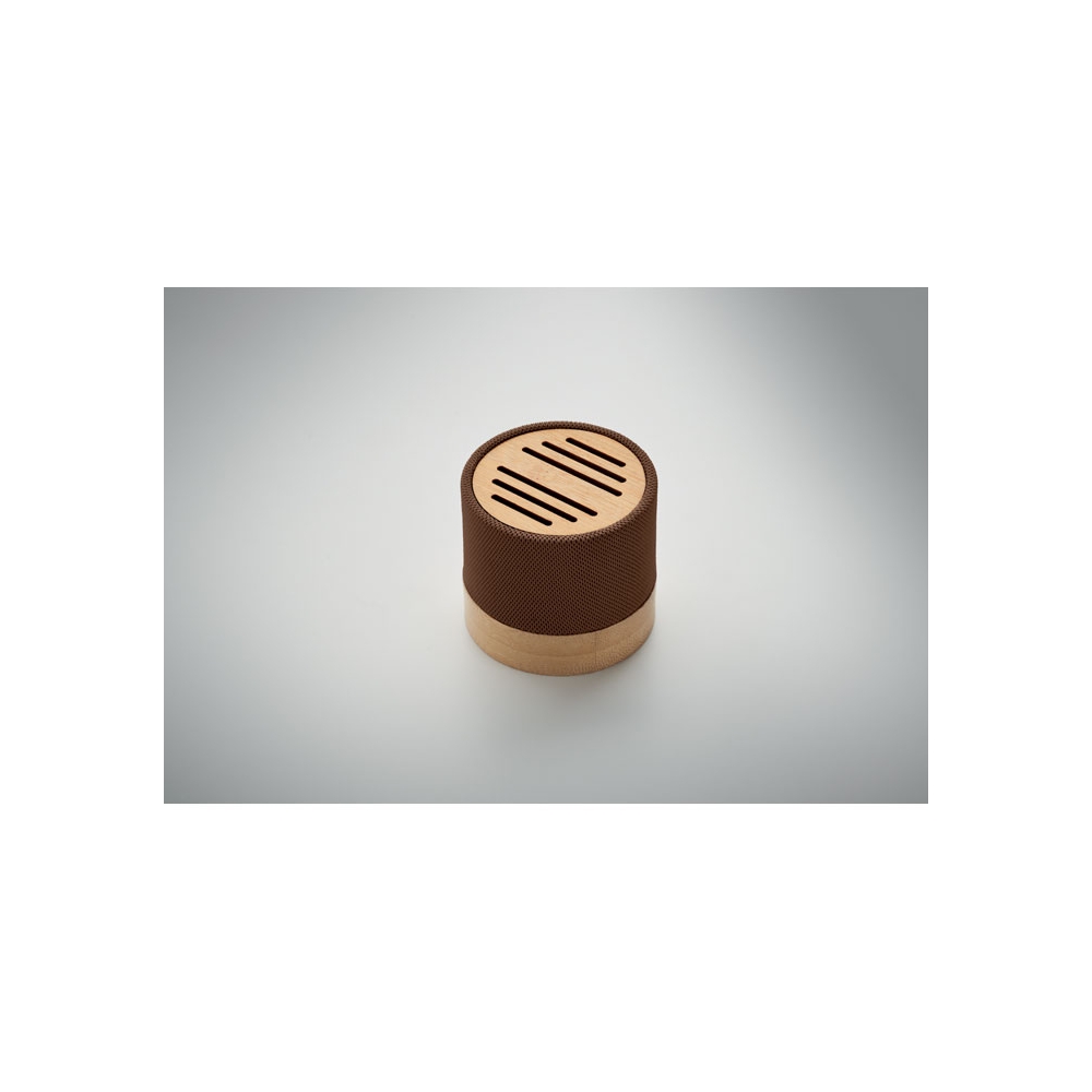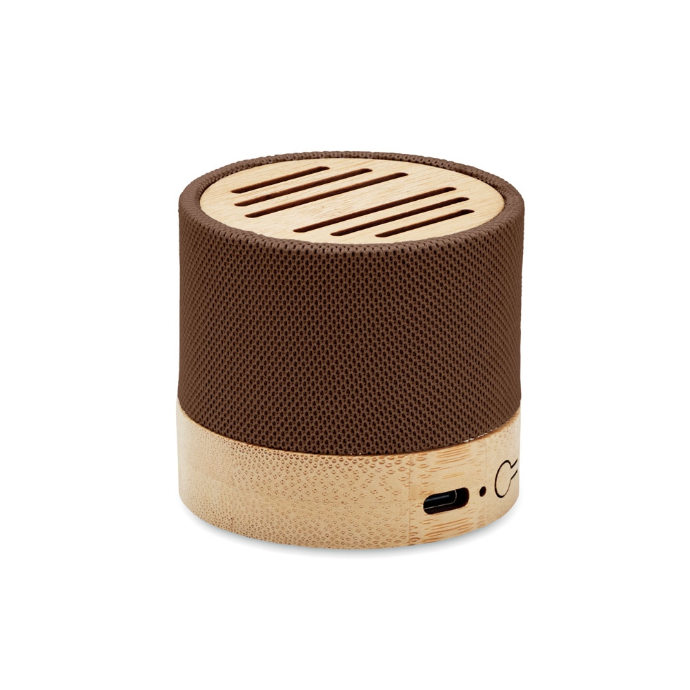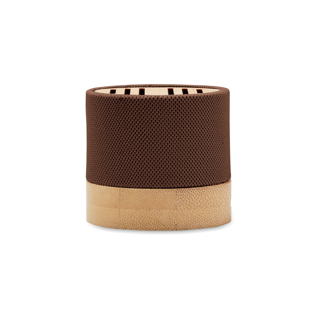 Artikel-Nr: OCBMO6847-415.0 wireless Lautsprecher in RPET-Gehäuse mit Bambus. Mit LED- Lichtanzeige sowie SD-Kartenslot und AUX- / USB-Kabel. Freisprechfunktion. Inkl. 1 wiederaufladbarer Li-ION-Akku mit 300 mAh. Ausgangsdaten: 3 W, 3 Ohm und 5 V. Spielzeit ca. 3h. Bambus ist ein natürliches Produkt, es kann daher zu leichten Abweichungen in Farbe, Dekor und Maßen kommen.