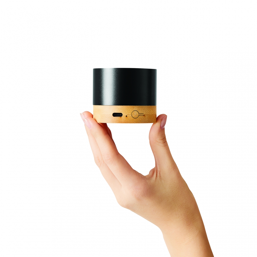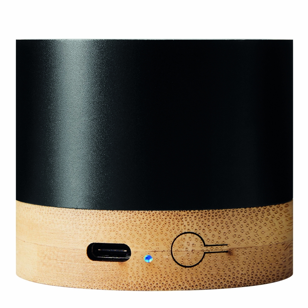 Artikel-Nr: INP56-0406249Wireless-Lautsprecher PURE SOUND: recyceltes Aluminium auf Bambus-Sockel, Musikleistung 3 Watt, ca. 10 m Reichweite, zur Koppelung mit Handy, Wireless-MP3-Player, Tablet, etc., kompatibel zu Bluetooth®, inkl. Aufladekabel (Kabellänge ca. 120 cm, USB Typ C), Freisprechfunktion, Eingangsleistung: 5V/1A, integrierter, aufladbarer Akku mit 300mAh