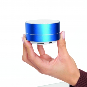 Artikel-Nr: INP58-8106021Wireless-Lautsprecher UFO: Musikleistung 3 Watt, ca. 10 m Reichweite, zur Koppelung mit Handy, Wireless-MP3-Player, Tablet etc., kompatibel zu Bluetooth®, inkl. Aufladekabel, Slot für microSD-Karten, FM-Radio, Freisprechfunktion, Eingangsleistung: 5V/0,5A, integrierter aufladbarer Akku mit 400 mAh, Anti-Rutsch-Beschichtung am Boden