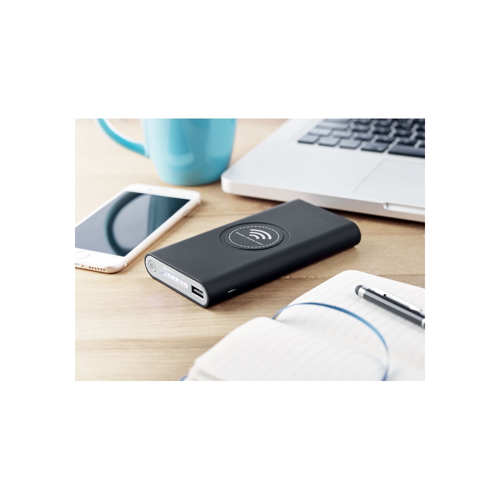 Artikel-Nr: OCBMO9238-03Kabellose Powerbank 8000 mAh. Durch Auflegen Ihres Smartphones, oder mit Kabel, startet der Ladevorgang. Inkl. Typ C Anschluss. ABS mit gummiertem Finish. Powerbank-Ausgang DC5V/2,1A. Kabelloser Ausgang: DC5V/1A. Kabelloser Empfang: DC5V/0.75A.