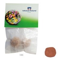 Inhalt: 2 Tonkugeln mit Samenfüllung im Pergamintütchen. Samen: bunte Blumenmischung