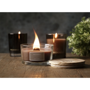 Artikel-Nr: CLP179040Dekorative, luxuriöse Wooosh-Duftkerze aus massivem, poliertem, klarem Glas. Das Knistern des natürlichen Holzdochts dieser Duftkerze ähnelt einem behaglich brennenden Kaminfeuer. Das Glas wird mit einem Deckel aus Kiefernholz verschlossen, der auch als Untersetzer für die Kerze genutzt werden kann. Die Kerze besteht zu 5% aus Sojawachs und zu 95% aus Paraffinwachs. Sobald Sie die Kerze anzünden, füllt sich der Raum mit einem magischen Amber Duft, der sich als warm, sinnlich und mit sanfter Süße beschreiben lässt. Die geheimnisvoll, würzig duftende Mischung von Aromen ist ebenso faszinierend wie ansprechend. Amber ist ein beliebter Duft, der in jedes Ambiente passt. Diese elegante Duftkerze mit einer Brenndauer von ca. 35 Stunden ist eine stimmungsvolle und dekorative Ergänzung für Ihr Interieur. Pro Stück in einer luxuriösen Wooosh-Geschenkbox.